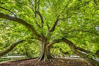 Oude kastanjeboom met takken die ondersteund moeten worden in de tuin van het Poptaslot in Marsum aan de rand van Leeuwarden-Friesland