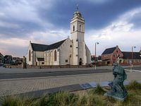 Oude kerk aan de boulevard van Katwijk aan zee. Kustplaats met een mooi strand en heerlijk aan de zee