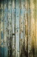 Foto van een oude deur in een klein Portugees dorp. De kleuren, afbladdering en het effect van tientallen jaren geen onderhoud geven dit beeld een lading karakter.