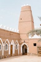 Een lemen gebouw in Ushaiger of Ushaiqer. Ushaiger Heritage Village is een oud lemen stadje op ongeveer 2 uur rijden van Riyad. Riyad is de hoofdstad van Saoedi-Arabië.
