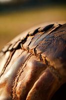 Hier wordt een fascinerend detail van het leven onthuld: de ruwe textuur en soepele vorm van een versleten leren bal die verhalen van spel en passie vertelt. De warme bruine tinten en het fijne stiksel zorgen voor een nostalgische charme. Perfect voor een sporthoek in de woonkamer om herinneringen aan bewogen tijden op te roepen.