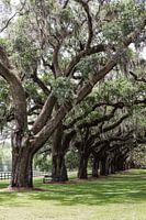 Laat je betoveren door de pracht van de oude eiken met Spaans mos in Charleston, Amerika. Deze serene foto brengt de rustieke schoonheid van de zuidelijke natuur in huis.