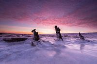 Mooie winterse arctische omstandigheden op de Waddenzee deze winter. Heerlijke zonsopkomst foto in de snijdend koude wind!Over al ijsschotsen, het lijkt wel IJsland! Winter 2021!