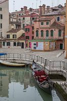 Oude panden en gondola aan kanaal in oude centrum van Venetie, Italie