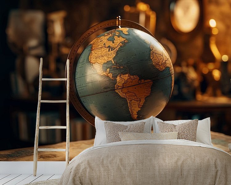 Koop de foto Oude retro wereldbol met een kaart op de achtergrond van Animaflora PicsStock op canvas, aluminium dibond, (ingelijste) fotoprint, behang en ArtFrame, op maat geprint in Fine-Art kwaliteit.