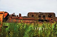 Ik vond deze trein, locomotief, op een verlaten spoorwegemplacement. De natuur lijkt de trein over te nemen, want groene struiken bedekken de trein langzaam maar zeker. Er blijft slechts een kleine hoeveelheid groene verf over, omdat de verf wordt vervangen door roest. Het zal niet lang meer duren voordat zelfs deze sterke en enorme…