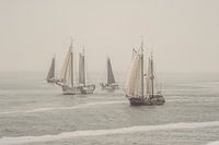 Oude schepen op de Waddenzee in de vaargeul tussen Terschelling en Harlingen.