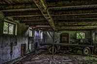 Een oude schuur met een boerenkar in Etten-Leur, Noord-Brabant, Nederland.