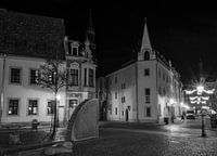 Oude stad in Zwickau bij nacht zwart-wit fotografie
