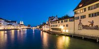Oude stad met 's avonds de Limmatquai en Schipfe in Zürich.