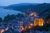 Oude stad met Sint-Pieterskerk en Wernerkapel in de schemering, Bacharach am Rhein, Rijnland-Palts,  van Torsten Krüger