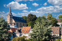 Oude stad met kerk in Essen wordt Ruhrgebied Duitsland