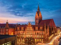 Oude stad van Hannover, Duitsland bij nacht met kerstversiering