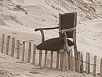 Tijdens een wandeling deze oude stoel tegen gekomen op een hek op het strand van Zeeland.