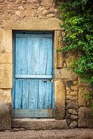 Een mooi oud deurtje zoals je die her en der in Frankrijk tegenkomst. Wat me hierbij vooral aantrok wat het verweerde van de deur en de kleurencontrasten van het geel van de muur, het blauw van de deur en het groen van de begroeing.