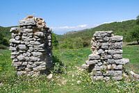 Stukken muur van een oude vesting op het griekse eiland Corfu.
