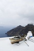 Koop de foto Oude vissersboot in Caldera Santorini van haroulita op canvas, aluminium dibond, (ingelijste) fotoprint, behang en ArtFrame, op maat geprint in Fine-Art kwaliteit.