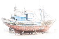 In de oude Marrokaanse stad Essaouira (het vroegere Mogador) vind je, in de haven, een droogdok waar oude, houten boten vakkundig hersteld worden. Het is een idyllische omgeving waar je prachtige foto's in highkey (tegen een heldere achtergrond) kan maken van deze fraaie boten en hun onderdelen. De tijd heeft gezorgd voor de vale kleuren van de verf en de fotogenieke corrosie van het metaal.