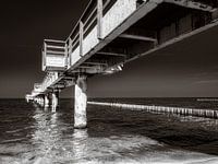 De oude pier in Koserow op het eiland Usedom aan de Oostzeekust. Zwart-wit versie.