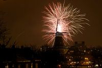 Oudejaarsavond in de hoofdstad. Vuurwerk achter molen de Gooijer. van Richard Wareham