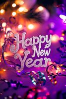 Twinkelende lichtjes en verspreide confettisnippers creëren een feestelijke sfeer, terwijl de glinsterende letters "Gelukkig Nieuwjaar" helder stralen. Deze levendige compositie creëert een vrolijke sfeer en is perfect voor in de woonkamer om gasten te inspireren en samen het nieuwe jaar te vieren. Een echte blikvanger die vreugde verspreidt!