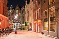 Oudekerksplein, Amsterdam, Nederland, met sneeuw.