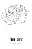 Zwart-witte landkaart, stratenplan of plattegrond van Oudelande. Oudelande is gelegen in de gemeente Borsele, provincie Zeeland. Op de stadskaart zijn alle openbare wegen in Oudelande opgenomen. Verder is de kaart voorzien van de coördinaten van het centrum van Oudelande.