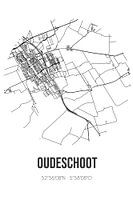 Zwart-witte landkaart, stratenplan of plattegrond van Oudeschoot. Oudeschoot is gelegen in de gemeente Heerenveen, provincie Fryslan. Op de stadskaart zijn alle openbare wegen in Oudeschoot opgenomen. Verder is de kaart voorzien van de coördinaten van het centrum van Oudeschoot.