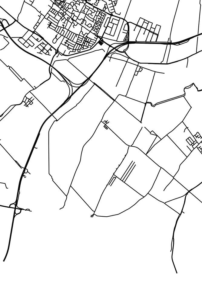Zwart-witte landkaart, stratenplan of plattegrond van Ouwsterhaule. Ouwsterhaule is gelegen in de gemeente De Fryske Marren, provincie Fryslan. Op de stadskaart zijn alle openbare wegen in Ouwsterhaule opgenomen. Verder is de kaart voorzien van de coördinaten van het centrum van Ouwsterhaule.