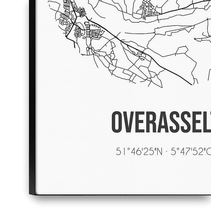 Koop dit abstracte kunstwerk Overasselt (Gelderland) | Landkaart | Zwart-wit van Stad & Wand als print op canvas, aluminium dibond, (ingelijste) fotoprint, behang en ArtFrame. Voor jou op maat geprint in Fine-Art kwaliteit.