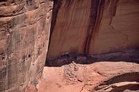 Overblijfselen van de beschaving bij de Sliding House Overlook in Canyon de Chelly, Arizona, VS. Sliding House Ruin, gelegen op de smalle richel aan de overkant van de canyon, heeft een toepasselijke naam. De schuine vloer van de richel werd gecompenseerd door de bouw van steunmuren. Deze muren werden gebouwd door de vroege…