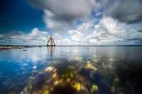 Uitzicht in het plaatsje Den oss. Bij het Grevelingenmeer De houten palen in het water om af te meren voor boten wordt ook wel de 'adelaarshoofd' genoemd. Een beschermd natuur gebied in Nederland met kristalhelder water en een rijk gevarieerd zeeleven. Deze locatie staat ook bekend als een van de mooiste duiklocaties van Nederland. Sfeervolle landschap foto voor kantoor of huiskamer.