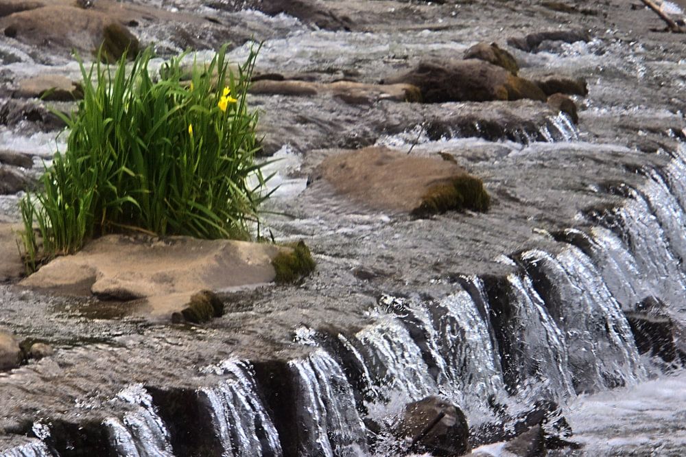 Waterlelies in de waterval aan de Ruhr bij kasteel Hardenstein