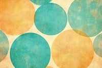 Overlappende Cirkels Abstract - Dit abstracte schilderij kenmerkt zich door een patroon van overlappende cirkels in turquoise en oranje tinten op een getextureerde achtergrond.