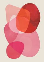 Een abstracte poster met een fascinerende compositie van overlappende organische vormen in levendige rode en roze tinten. De semi-transparante vormen creëren een harmonieuze mix van kleuren die diepte en visuele interesse toevoegt aan elke kamer. Tegen een neutrale gebroken witte achtergrond vallen de gedurfde tinten op, waardoor dit stuk een opvallend middelpunt wordt.