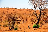 In het hart van de Australische outback staat een eenzame boom, waarvan de takken zwart zijn geworden door zon en droogte, met een onverwacht plukje groen. Vlakbij de beroemde rotsen van Kata Tjuta belichaamt deze boom de vastberadenheid van de natuur om te overleven. Het tafereel is opvallend: het groen contrasteert met de rode aarde…