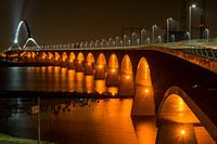 Nachtopname van de brug De Oversteek, over de rivier de Waal, bij Nijmegen.