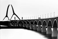 De brug De Oversteek over de Waal in Nijmegen. Dit is een zwart-wit foto, die loopt van rechts - realistisch - naar links - abstract.