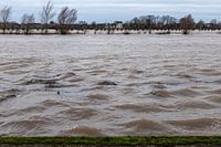 De uiterwaarden van de Gelderse IJssel, ter hoogte van Zutphen, staan onder water. De storm veroorzaakt hoge golven en schuimkoppen.