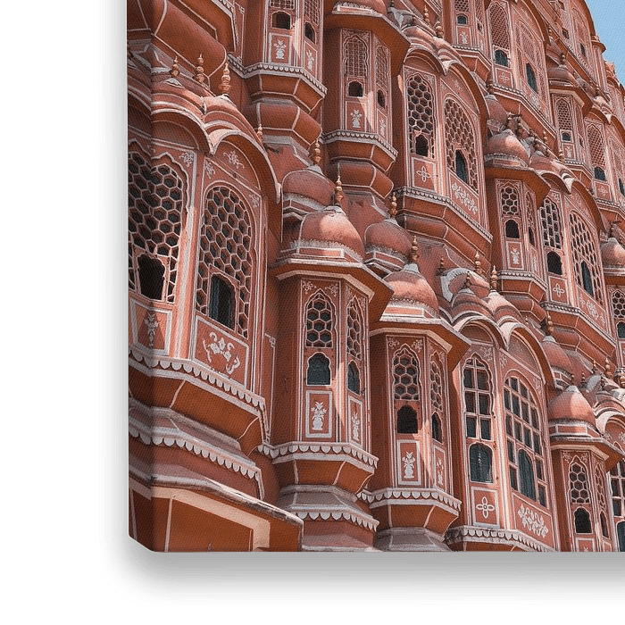 Koop dit landschapskunstwerk Overvliegende duiven bij de Hawa Mahal in Jaipur India. van Niels Rurenga op canvas, aluminium dibond, (ingelijste) fotoprint, behang en ArtFrame, op maat geprint in Fine-Art kwaliteit.