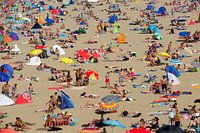 Een overvol strand van Scheveningen op 19 augustus 2012, de warmste dag van het jaar. De foto is een leuk zoekplaatje, er gebeurt van alles. Vanzelfsprekend ontdek en zie je meer bij een grote print.
