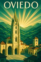 Deze Oviedo Art Deco poster legt de elegantie van de hoofdstad van Asturië vast, met de kathedraal die hoog oprijst tegen een achtergrond van weelderige bergen. De stralen accentueren de gotische torenspits en symboliseren Oviedo's mix van geschiedenis en natuurlijke schoonheid. De print is ontworpen in de stijl van een vintage reisposter en brengt Art Deco-geometrie in balans met zachte, heldere tinten, waardoor een tijdloos stuk muurkunst ontstaat. Oviedo, bekend om zijn middeleeuwse oude stad, religieuze erfgoed en verbinding met de Camino de Santiago, wordt prachtig weergegeven in dit kunstwerk. Of je Oviedo's charme nu zelf hebt ervaren of het Spaanse erfgoed bewondert, deze poster is een opvallende toevoeging aan je kunstcollectie. Perfect voor woonkamers, kantoren of creatieve ruimtes, het brengt een gevoel van cultuur en elegantie in elk interieur. Verzamelaars van vintage reiskunst en liefhebbers van de noordelijke landschappen van Spanje zullen het detail en de stijl van deze Oviedo-afdruk waarderen, waardoor het een betekenisvol cadeau of aandenken is.