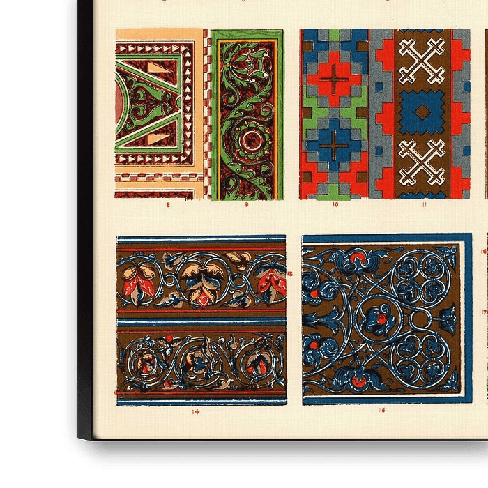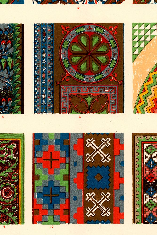 Grammatica van Ornament blijft een designklassieker. De inspiratie kwam van de baanbrekende Britse architect en ontwerper Owen Jones (1809-1874), die een uitgebreide ontwerpverhandeling voor het machinetijdperk produceerde, rijkelijk geïllustreerd met levendige chromolithografische kleuren. Jones maakte gedetailleerde observaties van decoratieve kunst tijdens zijn reizen in Europa, het Midden-Oosten en in zijn geboorteland Londen, waar hij objecten bestudeerde die te zien waren op de Grote Tentoonstelling van de Werken van de Industrie van alle Volkeren in 1851 en in lokale musea.