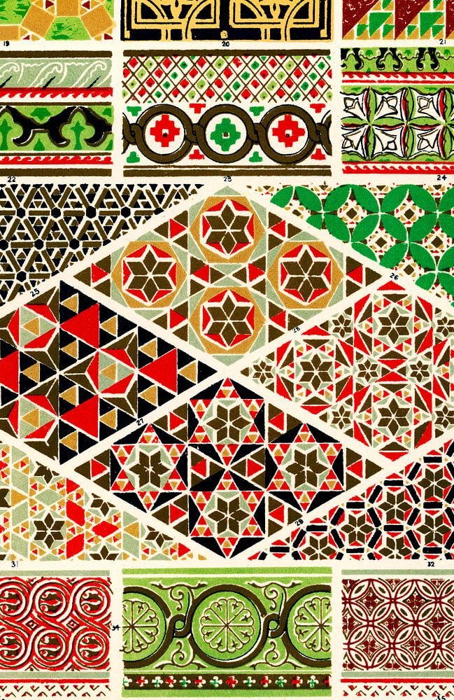 Grammatica van Ornament blijft een designklassieker. De inspiratie kwam van de baanbrekende Britse architect en ontwerper Owen Jones (1809-1874), die een uitgebreide ontwerpverhandeling voor het machinetijdperk produceerde, rijkelijk geïllustreerd met levendige chromolithografische kleuren. Jones maakte gedetailleerde observaties van decoratieve kunst tijdens zijn reizen in Europa, het Midden-Oosten en in zijn geboorteland Londen, waar hij objecten bestudeerde die te zien waren op de Grote Tentoonstelling van de Werken van de Industrie van alle Volkeren in 1851 en in lokale musea.