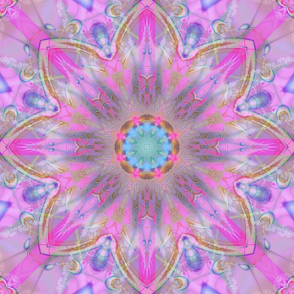 Deze mandala is ontstaan uit fractale patronen en caleidoscopische effecten. Elk beeld heeft zijn eigen helende vibratie en opent een nieuwe wereld voor de kijker.