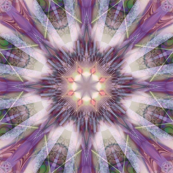 Deze mandala is ontstaan uit fractale patronen en caleidoscopische effecten. Elk beeld heeft zijn eigen helende vibratie en opent een nieuwe wereld voor de kijker.
