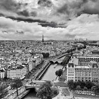 Zwart-wit Panorama van Parijs met de rivier de Seine, Frankrijk
