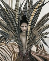 PAW is een schilderij van een vrouw gekleed in veren. Indiaanse vibe die sterke vrouwelijke energie toont. Ik hoop dat je ervan geniet.