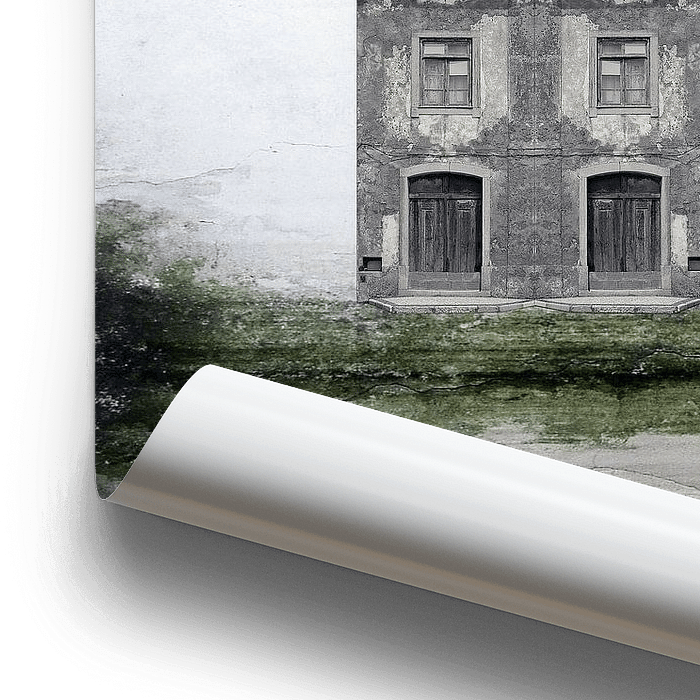 Stap binnen in een wereld waar herinnering, architectuur en het verstrijken van de tijd samenkomen. Dit suggestieve kunstwerk combineert op meesterlijke wijze digitale fotografie met de poëtische texturen van verweerde muren, en creëert zo een visuele meditatie over geschiedenis en transformatie.