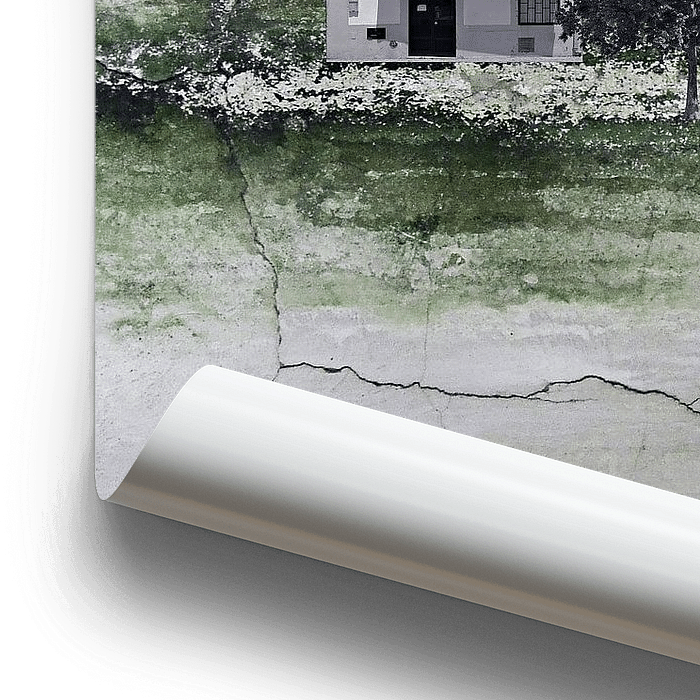 Stap binnen in een wereld waar herinnering, architectuur en het verstrijken van de tijd samenkomen. Dit suggestieve kunstwerk combineert op meesterlijke wijze digitale fotografie met de poëtische texturen van verweerde muren, en creëert zo een visuele meditatie over geschiedenis en transformatie.